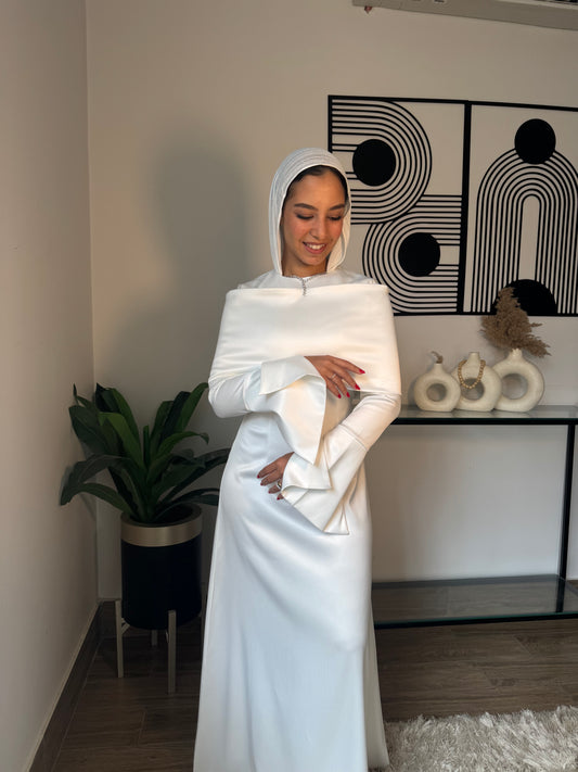 “The Serenity Gown – White Satin Modest Maxi Dress”
