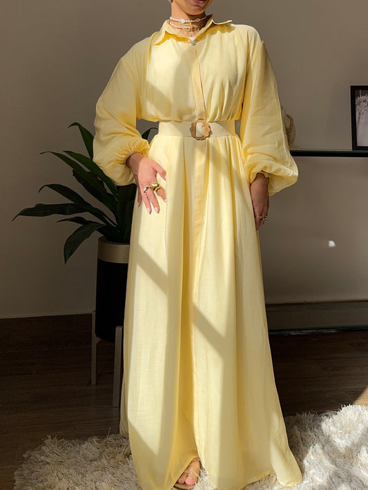 “Soft Sunshine Over Size Belted Maxi Dress”