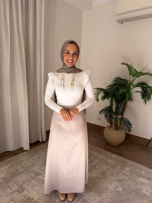 “The Serenity Gown – Rose Satin Modest Maxi Dress”
