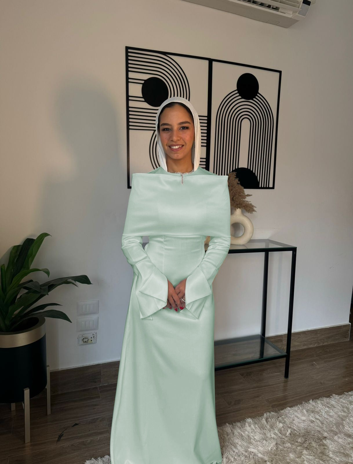 “The Serenity Gown – mint green Satin Modest Maxi Dress”