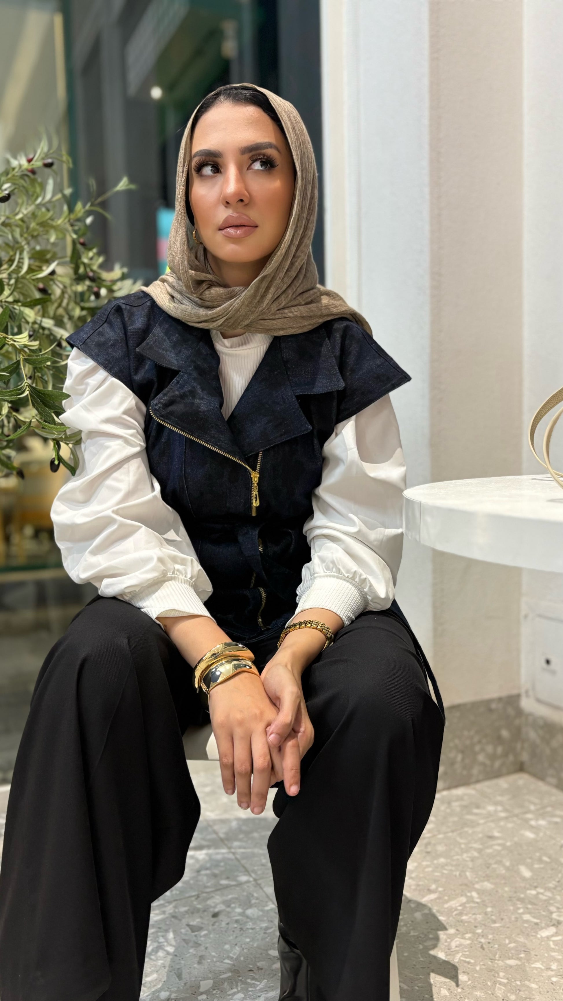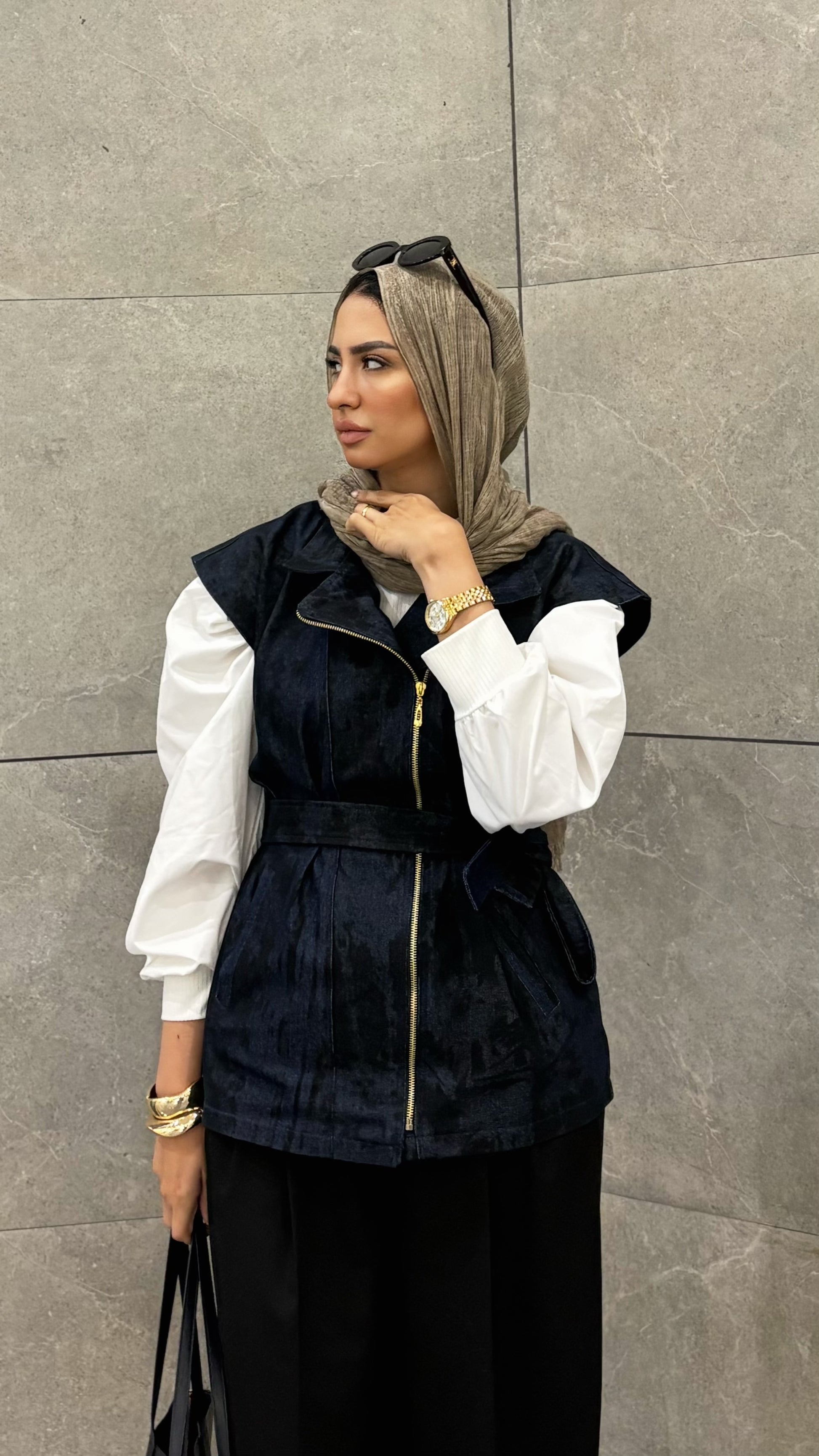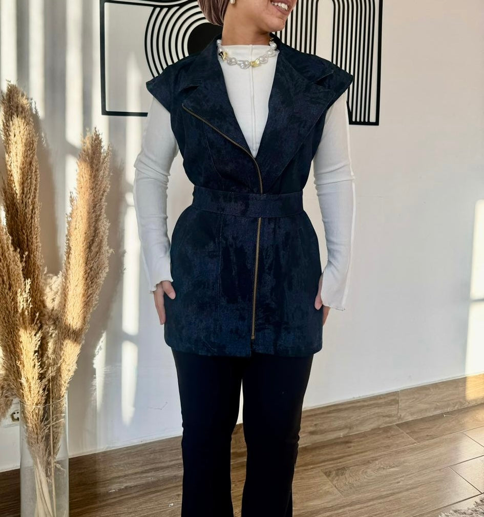 Denim Zip Vest with Waist Belt